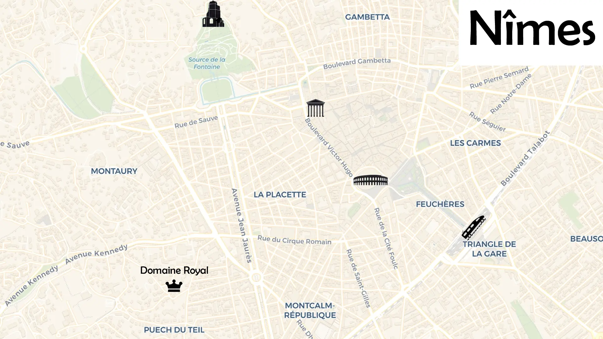 - le centre historique de Nîmes (Arènes, Maison Carrée, Jardins de la Fontaine),